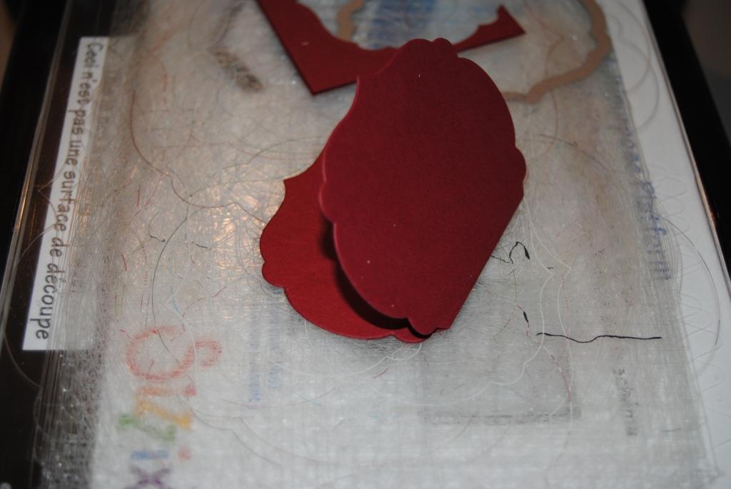 Die Farben diese Karte sind Wildleder, Vanille Pur und Chili. Die einzelnen Teile sind mit dem jeweils kleineren Rahmen und der Big Shot ausgestanzt. Der chilifarbende Teil ist zusätzlich noch mit dem Prägefolder Vintage Tapete geprägt und anschließend mit klarem Embossingpulver und dem Erhitzungsgerät embosst. Die Karte erhält dann einen gewissen Schimmer, aber das kommt auf dem Foto leider nicht so gut zur Geltung.